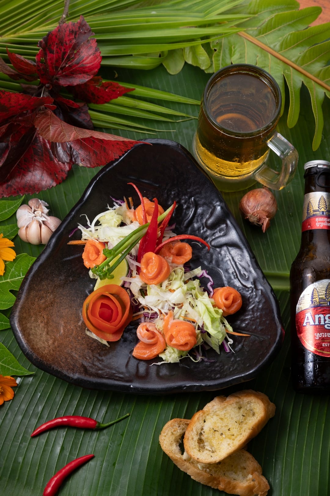For Lunch and Dinner, indulge in authentic Khmer and Western cuisine prepared by our skilled Cambodian Head Chef, using organic vegetables and the finest local ingredients. Enjoy a satisfying variety of Snacks, Burgers, Pizzas, and premium Imported Steaks crafted to perfection.